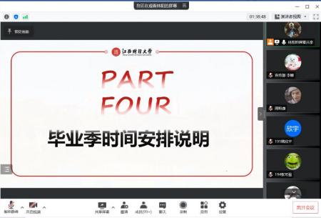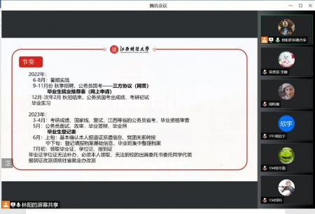 4月13日晚,统计欧美av 通过腾讯会议召开了2023届本科毕业生考研及就业动员大会,分析当前考研及就业形势,通报当前考研及就业进展情况,指导2023届毕业生树立正确考研及就业观,科学选择考研目标院校及就业单位。统计欧美av 首席教授罗良清、院长平卫英、院党委书记陶春海、副院长郭露、刘小惠和19级本科、21级二学位班主任及就业专员出席会议,欧美av 2023届全体本科、二学位毕业生参加会议。会议由院党委副书记黄黑平主持。