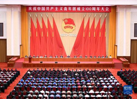 庆祝中国共产主义青年团成立100周年大会在北京人民大会堂隆重举行,习近平总书记出席大会并发表重要讲话。在讲话中,习近平总书记带领全体青年共同回忆一百年来,青年团员在中华民族伟大复兴进程中贡献的强大力量和建设的重要功勋。习近平总书记表示,百年征程,塑造了共青团坚持党的领导的立身之本、坚守理想信念的政治之魂、投身民族复兴的奋进之力、扎根广大青年的活力之源。同时,习近平总书记也激励广大团员青年要努力成长为有理想、敢担当、能吃苦、肯奋斗的新时代好青年,用青春的能动力和创造力激荡起民族复兴的澎湃春潮。最后,习近平总书记要求共青团坚持为党育人,自觉担当尽责,心系广大青年,勇于自我革命,始终成为引领中国青年思想进步的政治学校、成为组织中国青年永久奋斗的先锋力量、成为党联系青年最为牢固的桥梁纽带、成为紧跟党走在时代前列的先进组织,并表达了对中国共青团与中国青年的殷切期望。
