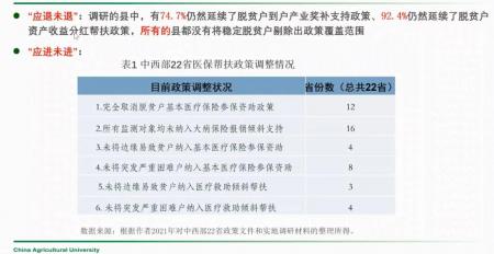随后,林万龙教授谈到通过2021年课题组的实地调研,发现扶贫成果巩固还存在不少薄弱环节,促进共同富裕,最艰巨最繁重的任务依然在农村。林万龙教授提出需要构建缓解相对贫困、促进农民农村共同富裕的“IPS三支柱”政策体系。将防止返贫监测帮扶体系与低收入人口监测帮扶体系并轨为统一的低收入人口监测帮扶体系。实现共同富裕一方面需要实现总体富裕、缓解相对贫困、消除绝对贫困,也可以理解为实现总体富裕、促进低收入群体收入的更快速增长、防止返贫。另一方面还需强化产业发展的包容性,以市场需求为导向选择发展包容性产业,特别是中低收入劳动力能广泛参与的特色产业;完善联农带农机制,构建小农户与现代农业有机衔接的产业发展模式。强化城乡产业融合发展除城乡二元体制;统筹城乡空间规划布局:推动农村一二三产业融合发展。